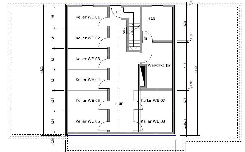 Ein Kellergeschoss ist auch mit eingeplant so dass jede Wohnung einen Kellerraum zugewiesen wird.