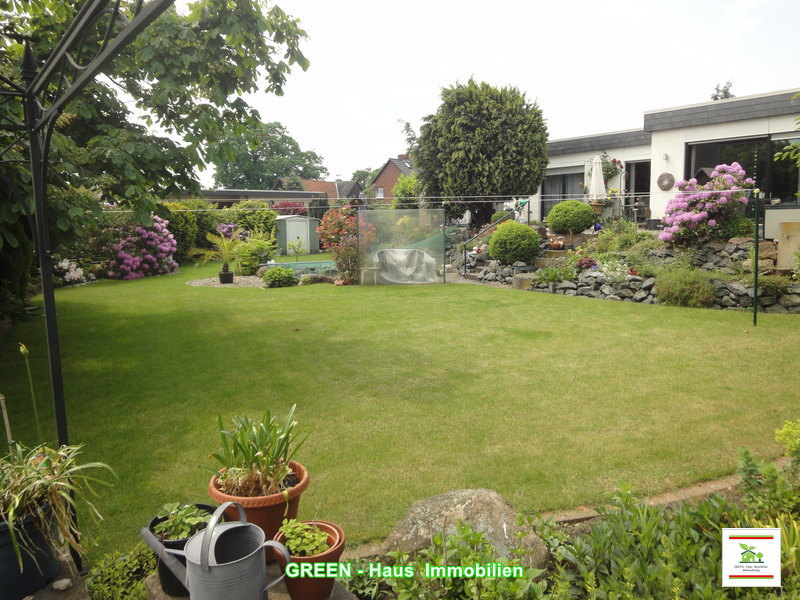 Lichtdurchflutetes Einfamilienhaus im Bungalowstil mit schönem Garten.