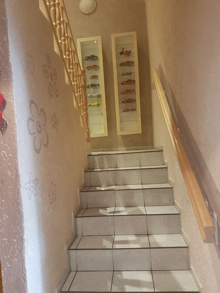 Über die Echtholztreppe erhält man Zugang zu dem Obergeschoss,