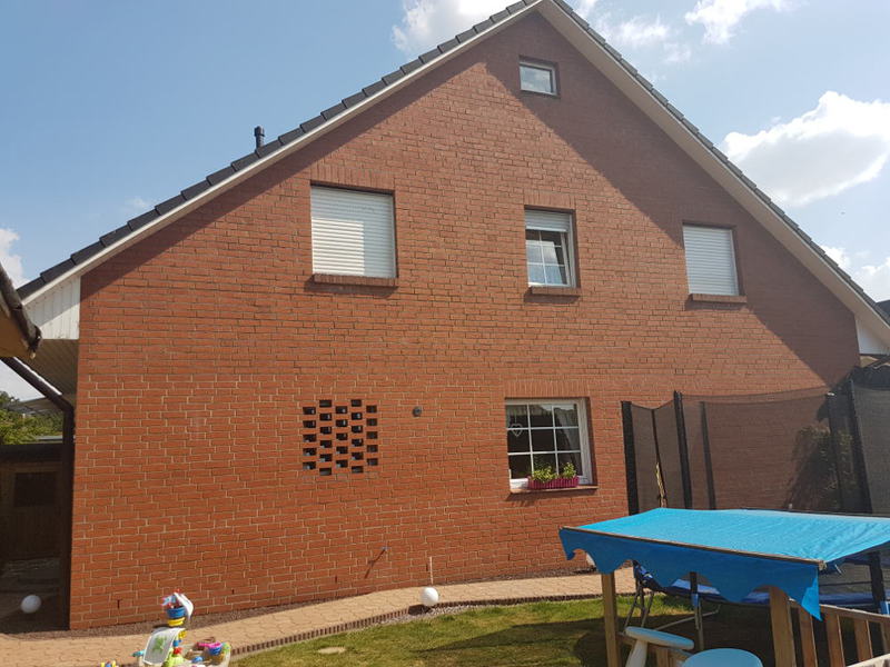 Im Jahre 1995 wurde in massiver Bauweise auf einem ca. 350 qm großen Grundstück dasgeräumige Doppelhaus im grünen Osloß errichtet.