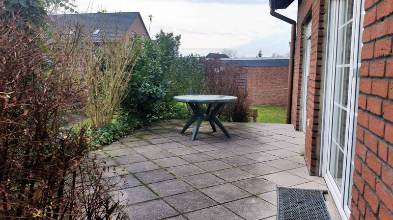 Von dieser großzügigen Wohnebene, ist vom Wohnzimmer die Süd-Terrasse mit angrenzendem Süd-Garten zu begehen. Die Terrasse ist der perfekte Ort, um den Garten und die warme Jahreszeit zu genießen.