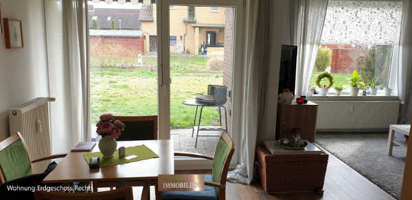 In den Erdgeschoss Wohnungen, ist vom Wohnzimmer die Süd-Terrasse mit angrenzendem großem Garten zu begehen.