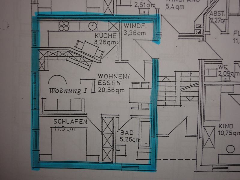 Über ein helles Treppenhaus und nur 6 Stufen erreichen Sie die 2 Zimmer Wohnung mit gut geschnittenen ca. 50m2. Durch einen Eingangsbereich/ Windfang betreten sie das große Wohn- und Esszimmer. Von diesem zentralen Raum der Wohnung erreichen Sie alle weiteren Räume. Ein großes Schlafzimmer. Ein hell gefliestes Tageslicht Badezimmer, mit Badewanne. Eine Küche mit Fenster und hochwertiger Einbauküche, die im Kaufpreis enthalten ist. Die Elektrogeräte der Marke Siemens und die Arbeitsplatte in der Küche sind erst vor 3 Jahren erneuert worden. Im Wohn-, Ess- und Schlafzimmer wurde ein Laminatboden in Nussbaumoptik verlegt. Das Badezimmer und die Küche sind hochwertig gefliest. Beheizt wird die Wohnung über eine Gas-Zentralheizung, die Warmwasserbereitung erfolgt zentral.